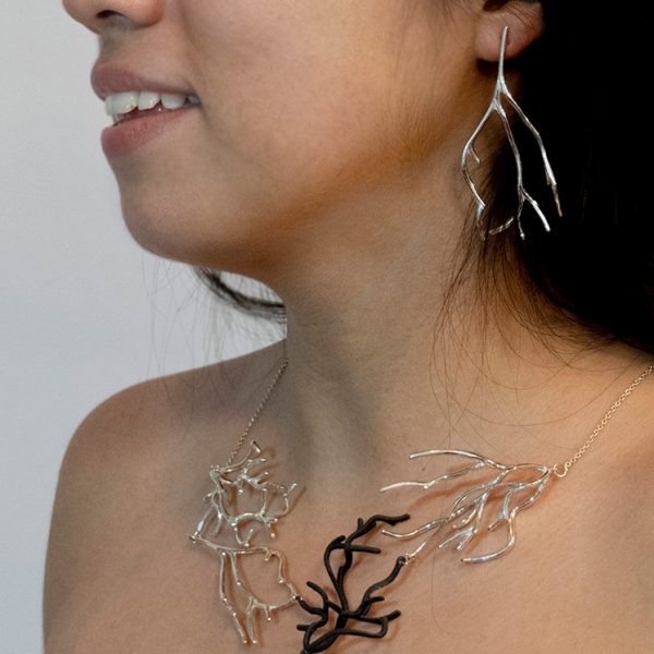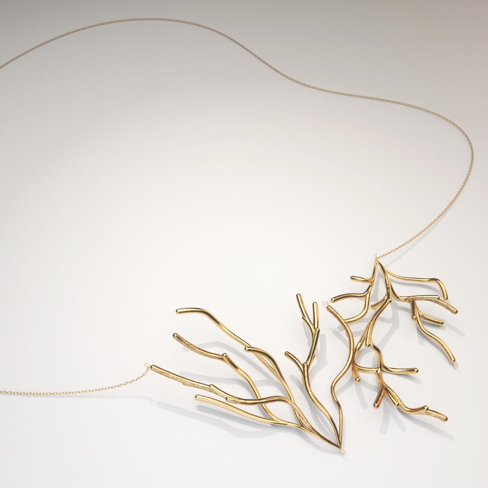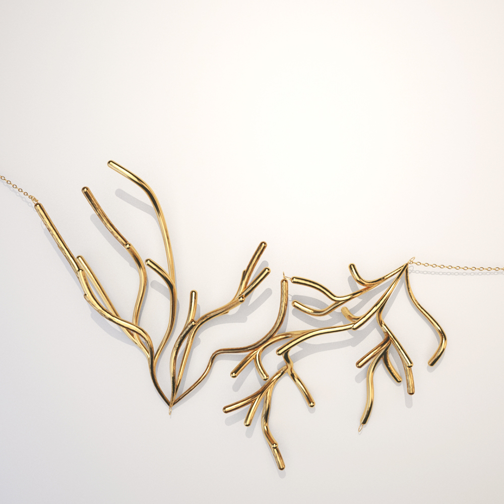Un collar con 2 Algas de tu elección, haciendo la combinación perfecta para lucir y combinar contigo. Geometrías generadas a partir de parámetros que simulan el crecimiento natural, imitando la flora acuática como algas o corales. Diseño original de Eduardo Luce y Mariana Estrada mediante softwares de programación geométrica ©.