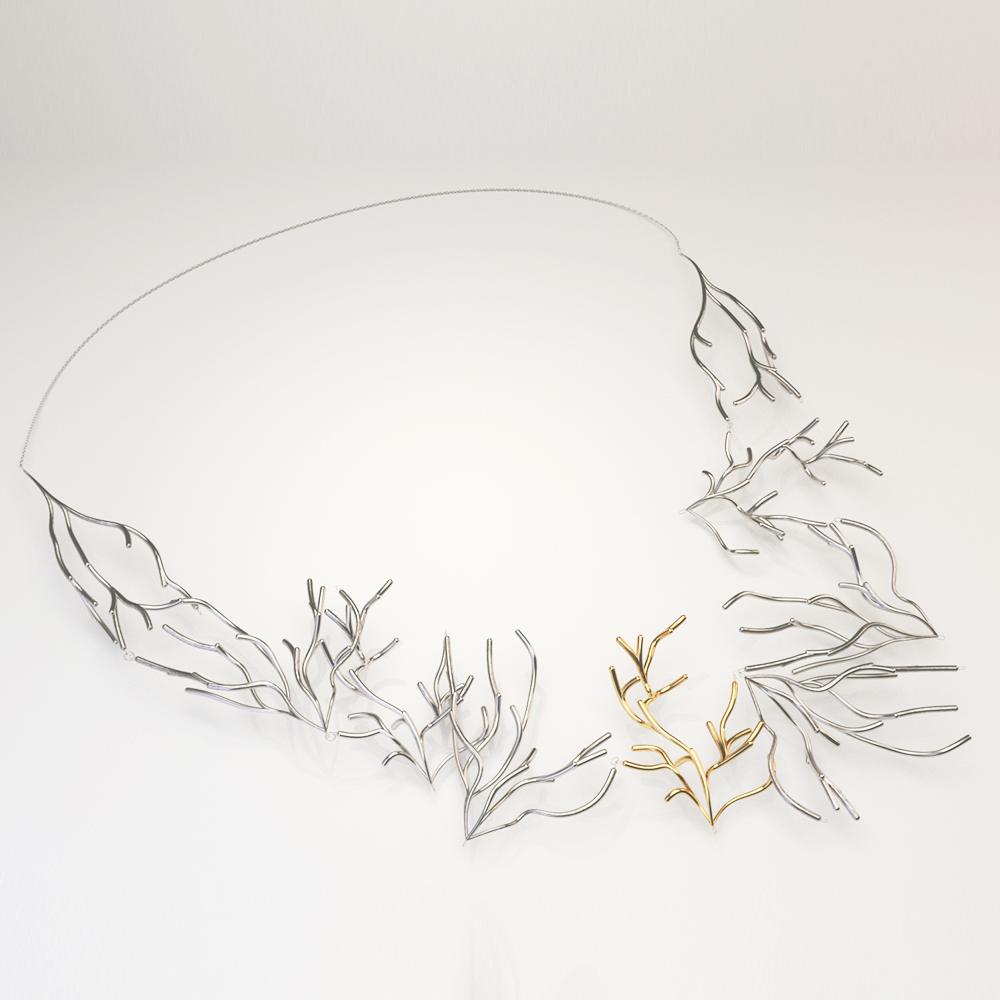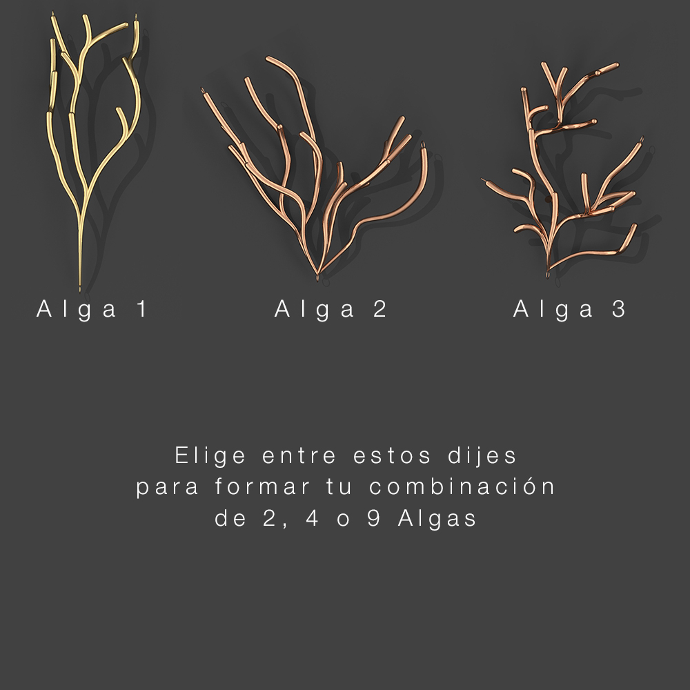 Nuestro collar más lujoso, un collar con 9 Algas de tu elección, haciendo la combinación perfecta para lucir y combinar contigo. Geometrías generadas a partir de parámetros que simulan el crecimiento natural, imitando la flora acuática como algas o corales ©.