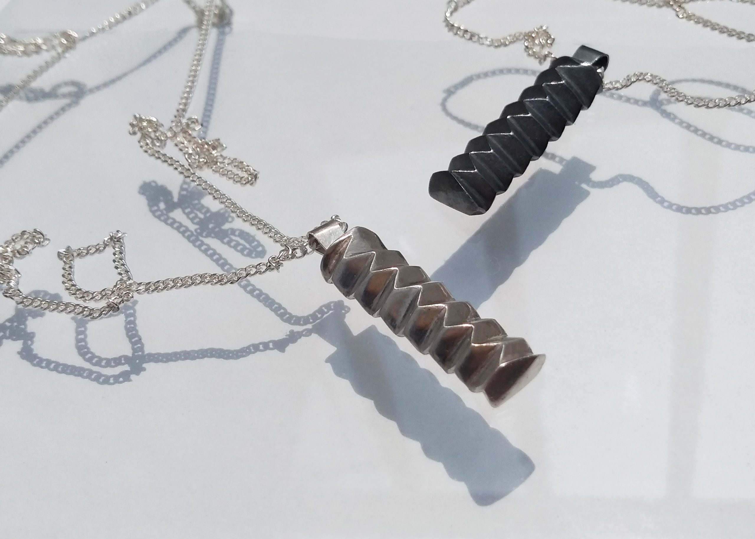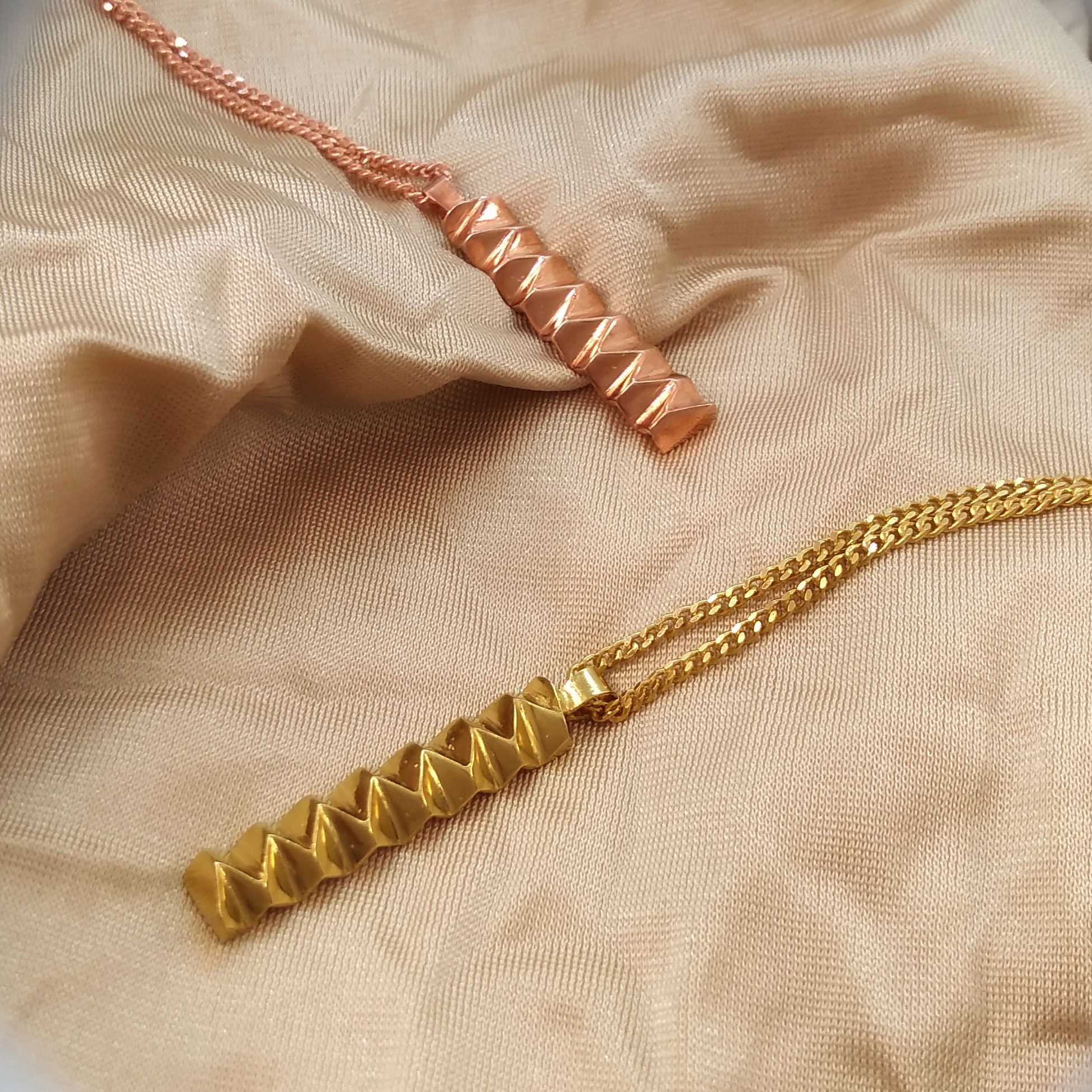 Collar facetado de plata reciclada en acabado pulido, incluye cadena de 50cm. Dije 3cm de alto 5mm de ancho